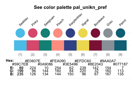 Originally, the unikn package primarily provided the 16 color palettes of the University of Konstanz:
