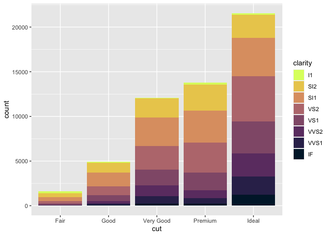 geom_bar(aes(x = cut, fill = clarity)) +