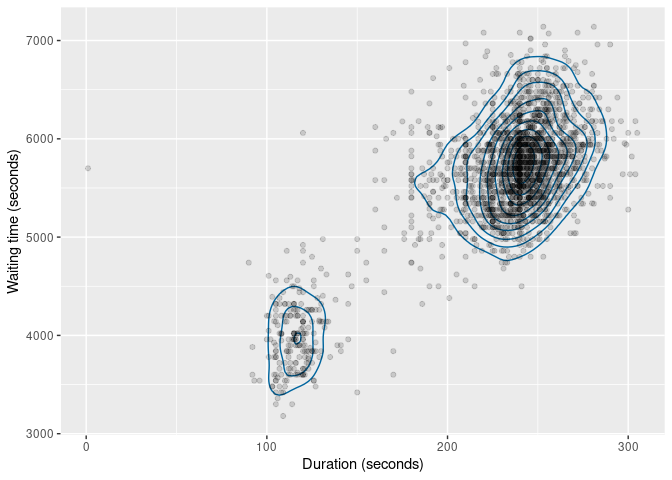 labs(x = "Duration (seconds)", y = "Waiting time (seconds)")