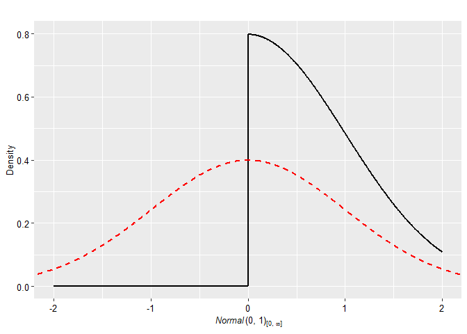 p2 <- prior(distribution = "normal", parameters = list(mean = 0, sd = 1), truncation = list(0, Inf))