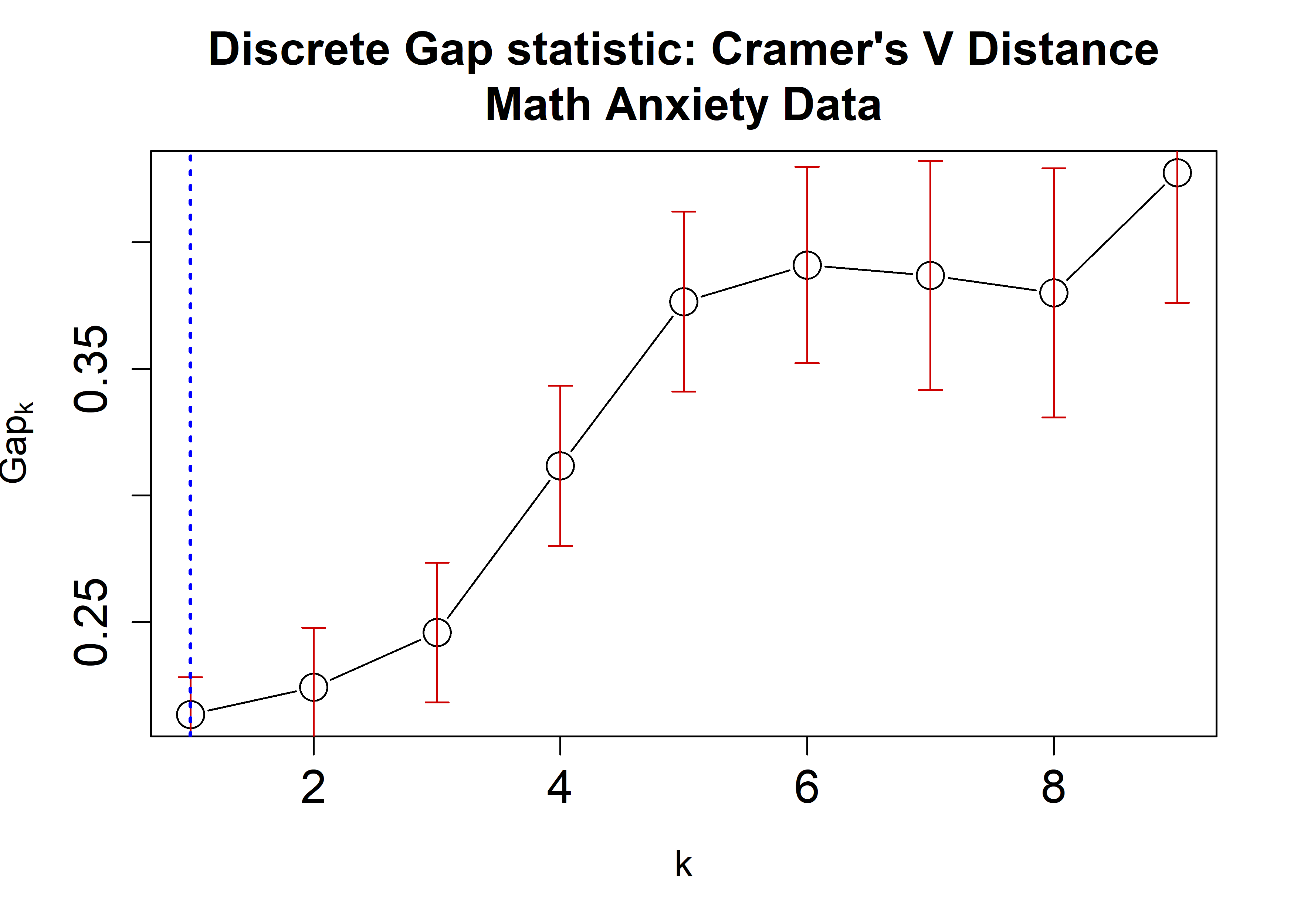 main = "Discrete Gap statistic: Cramer's V Distance\nMath Anxiety Data",