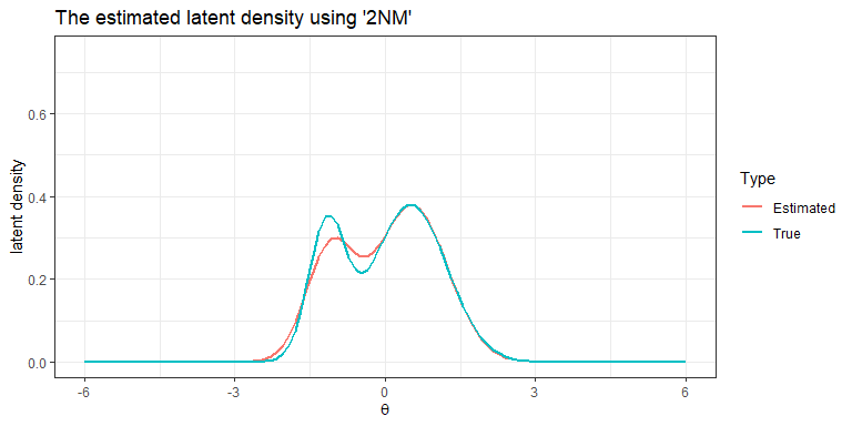 labs(title="The estimated latent density using '2NM'", colour= "Type")+
