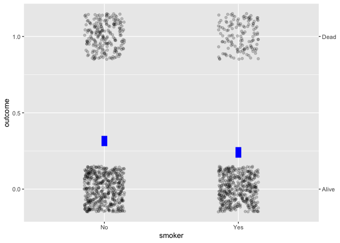 Whickham |> point_plot(outcome ~ smoker, annot = "model")