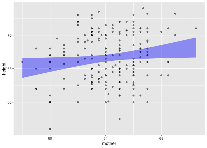 Galton |> point_plot(height ~ mother, annot = "model")