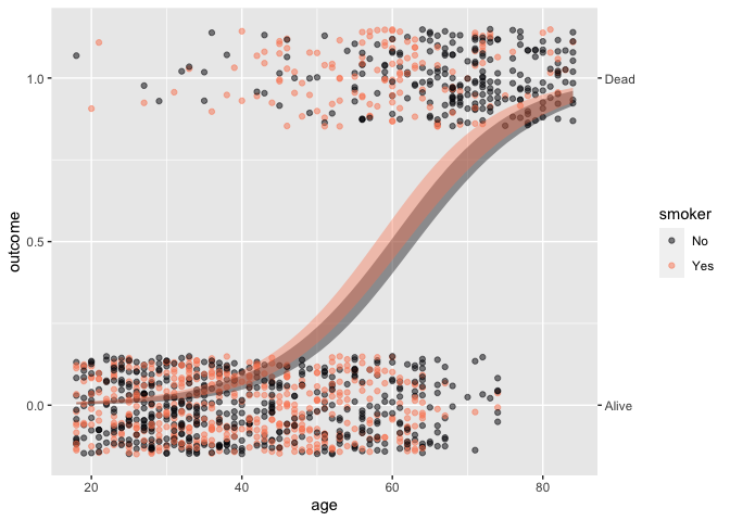Whickham |> point_plot(outcome ~ age + smoker, annot = "model")