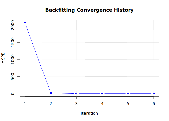 You can also inspect the convergence of the backfitting algorithm by plotting the Mean Squared Prediction Error (MSPE) over iterations.
