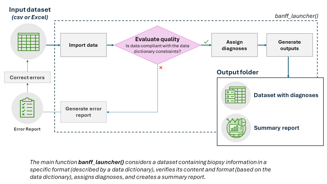 dictionary), assigns diagnoses, and creates a summary report. It is