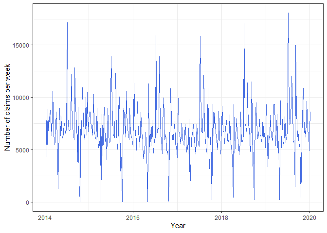 ylab("Number of claims per week") +