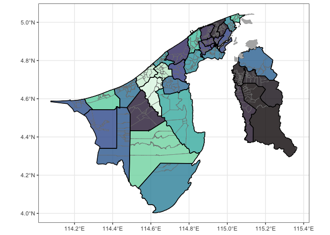 dis_sf (District level boundaries)mkm_sf (Mukim level boundaries)kpg_sf (“Kampong” level boundaries)Most likely you will want to use either the kampong level or mukim level data.