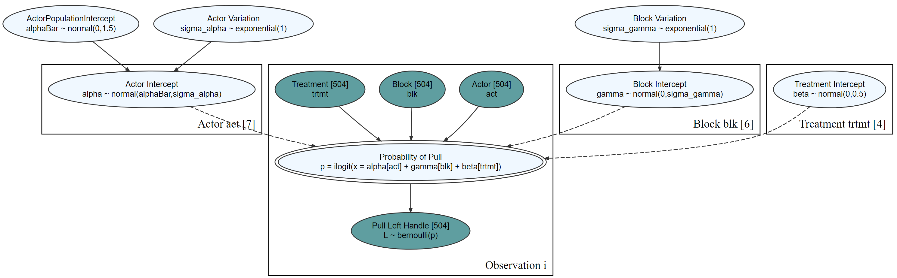 causactpackage offers robust support for both foundational and advanced Bayesian models. While introductory models are well-covered, the utilization of multi-variate distributions such as multi-variate normal, multi-nomial, or dirichlet distributions, may not work as expected. There are ongoing enhancements in the pipeline to facilitate construction of these more intricate models.