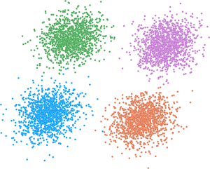 clugenr is an R implementation of the clugen algorithm for generating multidimensional clusters with arbitrary distributions. Each cluster is supported by a line segment, the position, orientation and length of which guide where the respective points are placed.