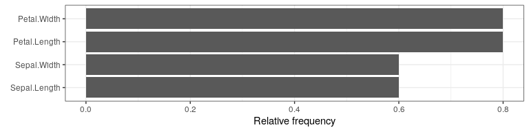 #> 5: 6.0 2.9 4.5 1.5 0.07403484 4 0 0 2One visualization option is to plot the frequency of feature changes
