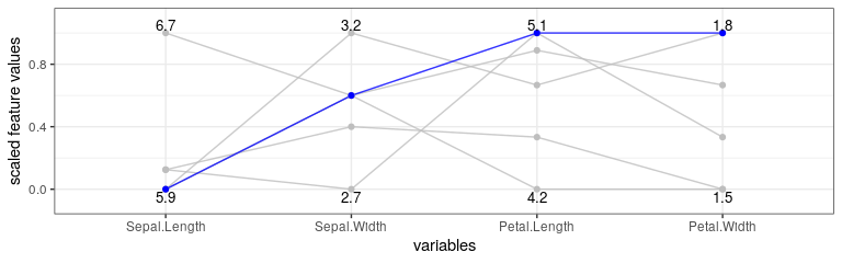 #> Sepal.Length Sepal.Width Petal.Length Petal.Width dist_x_interest no_changed dist_train dist_target minimality