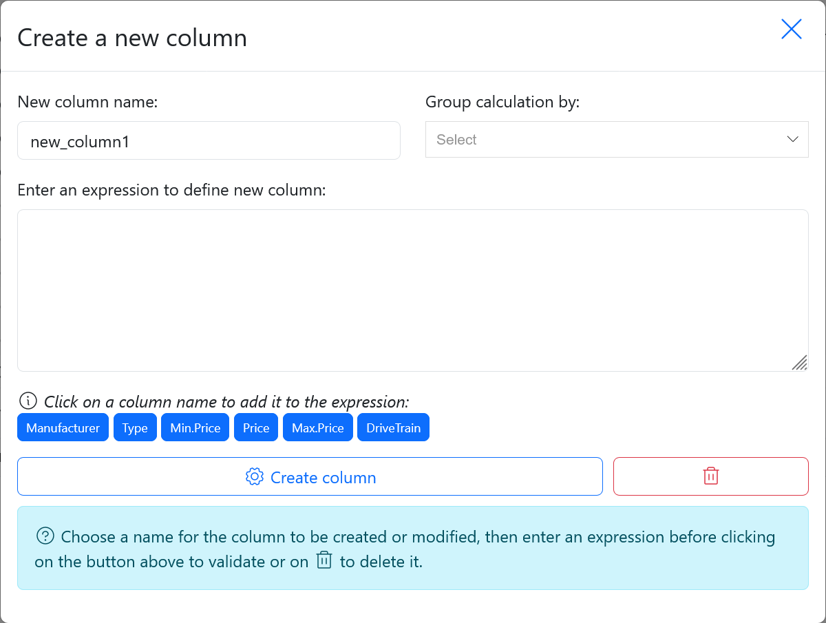 This module allow to enter an expression to create a new column in a