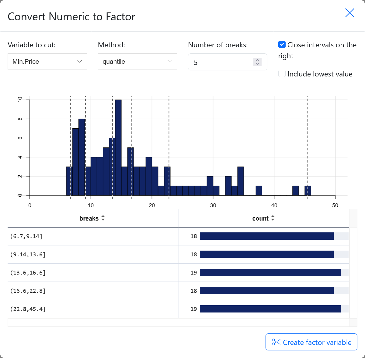 This module contain an interface to cut a numeric into several intervals.