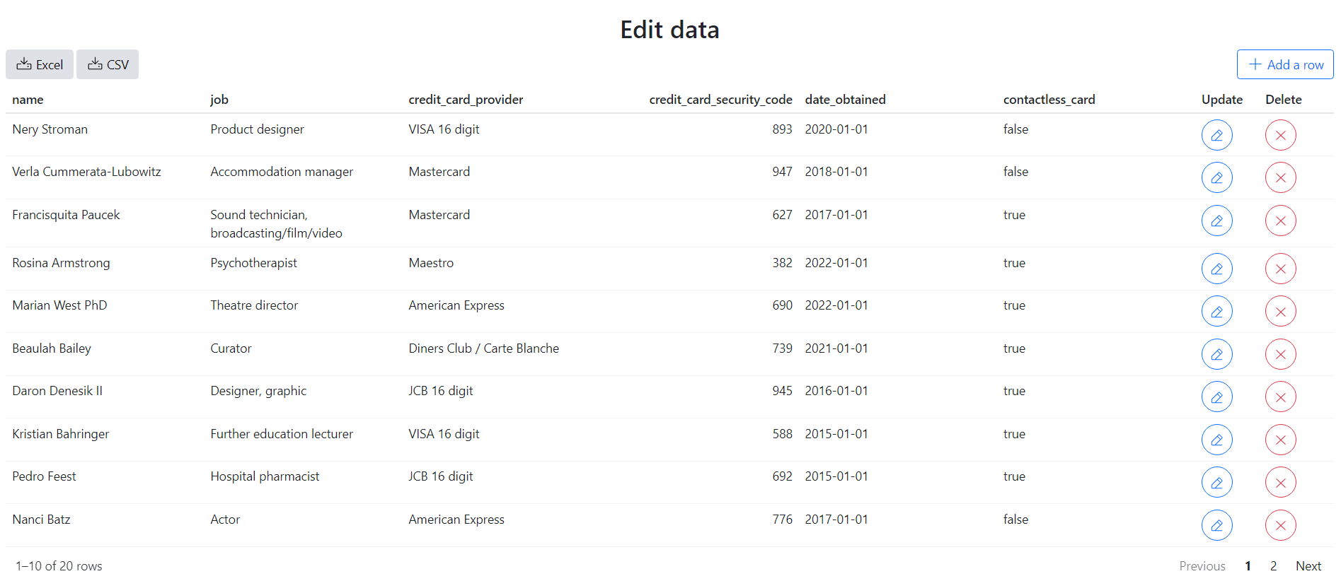 user to add, modify or delete rows.