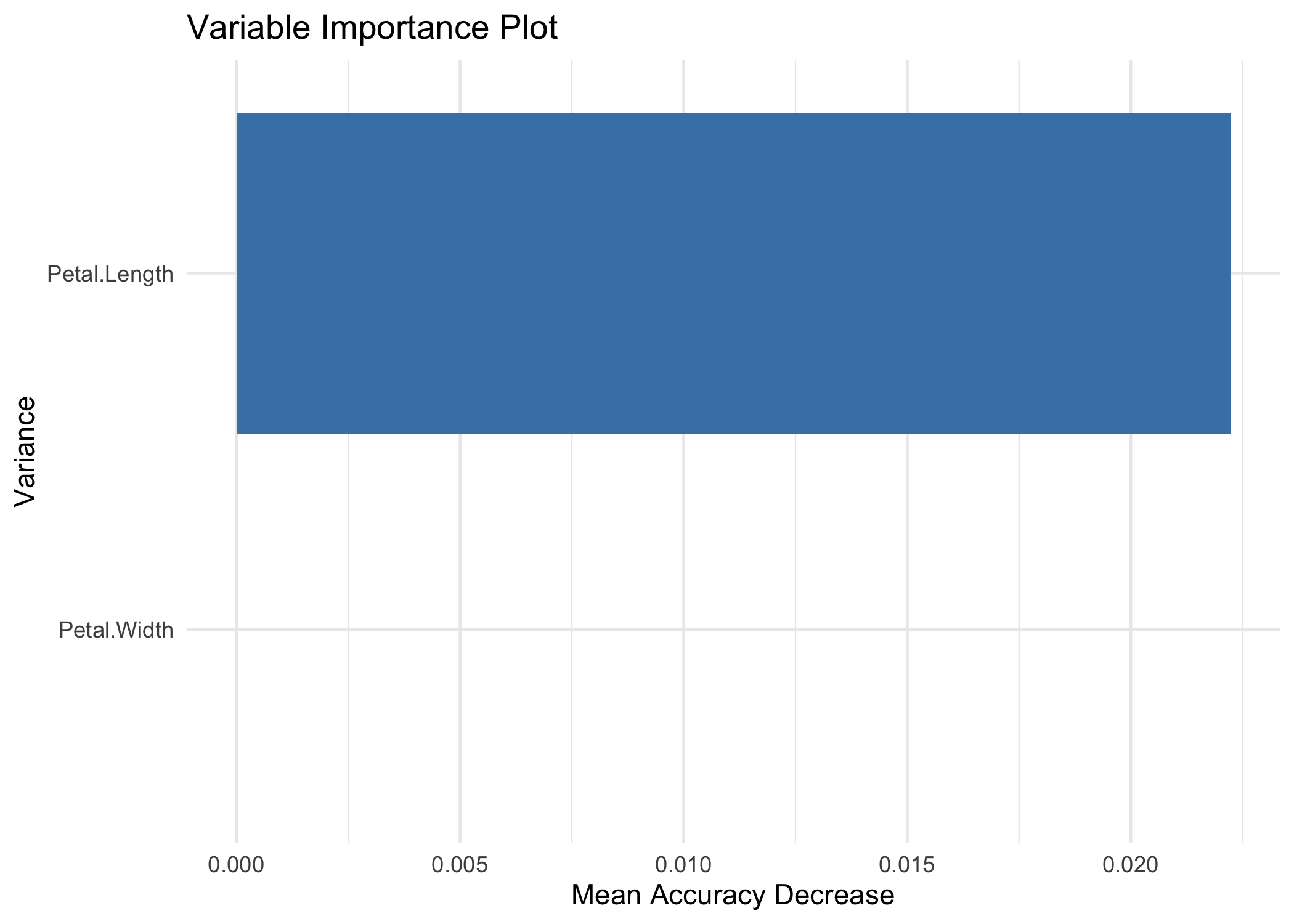 #> Variable MeanImpurityDecrease MeanAccuracyDecrease `ImpDec_ setosa`