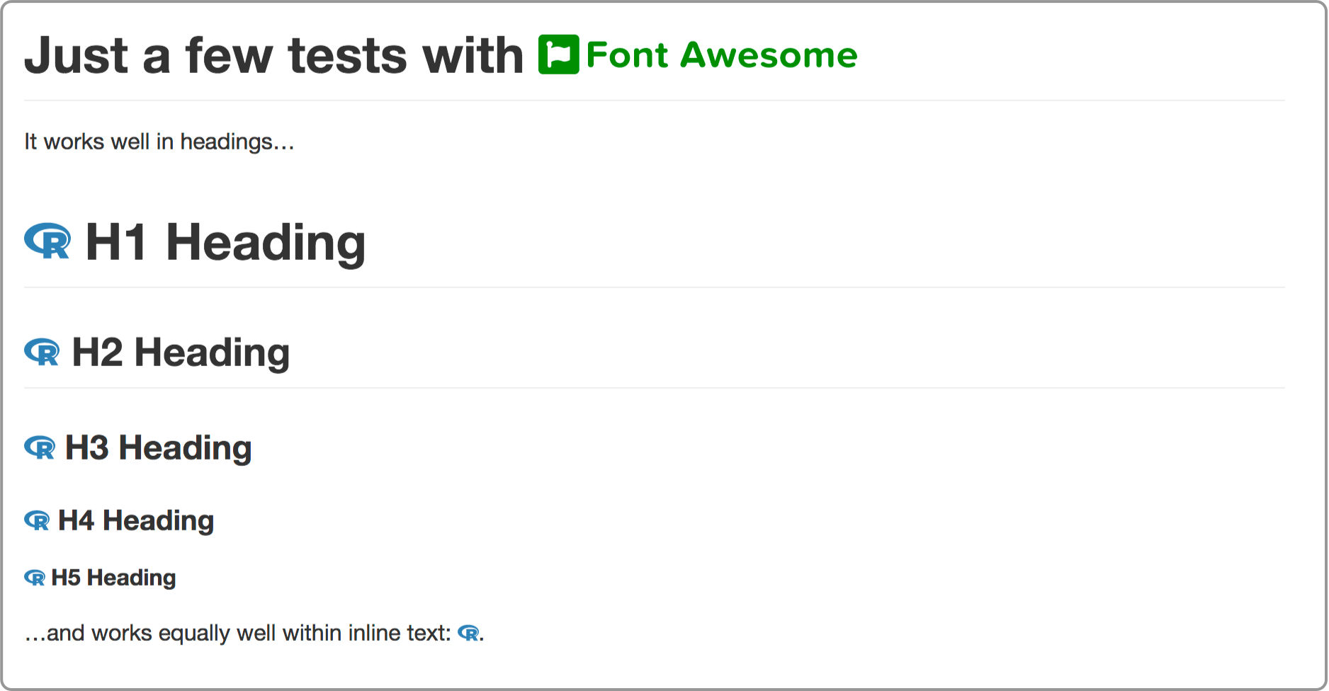# Just a few tests with `r fa("font-awesome-logo-full", fill = "forestgreen")`