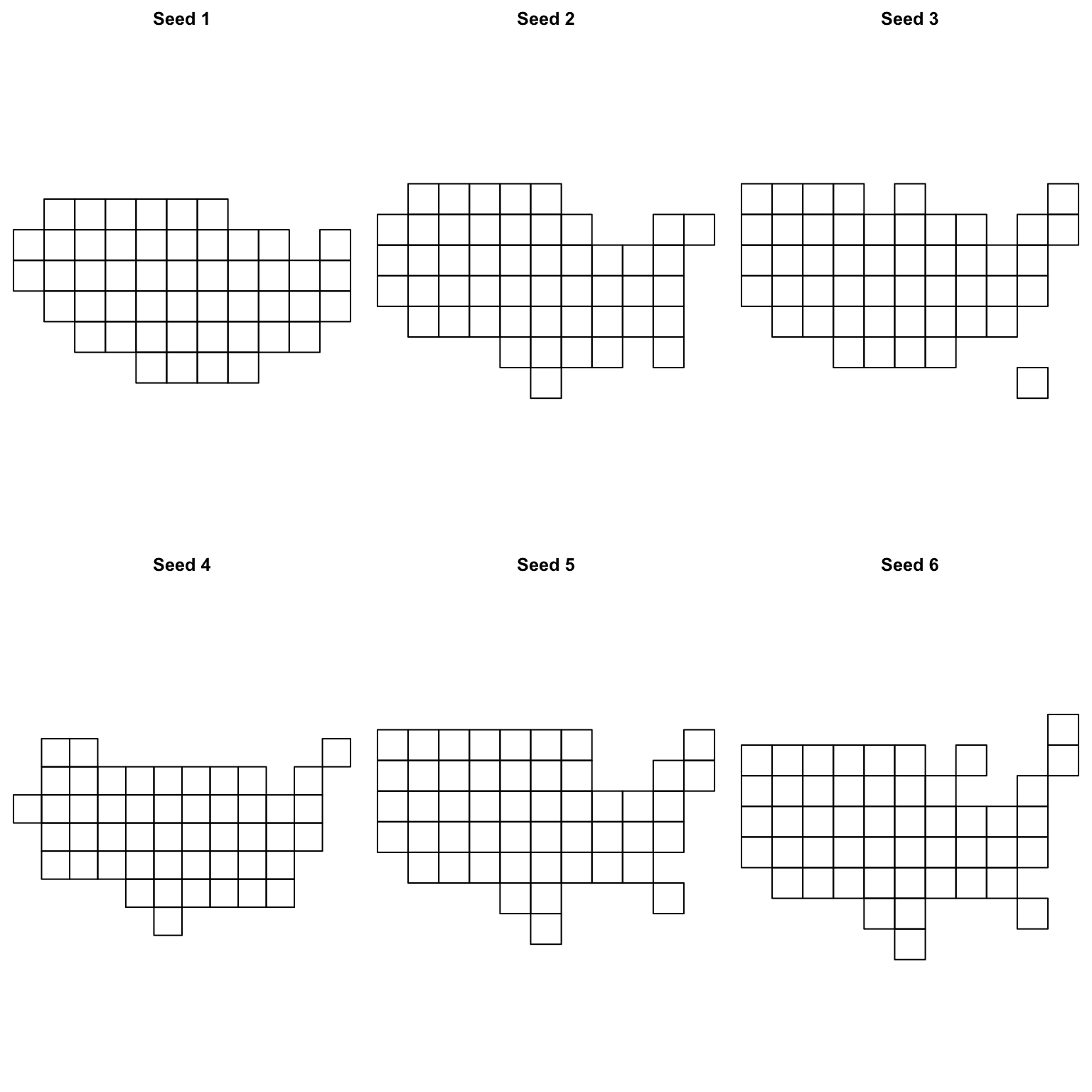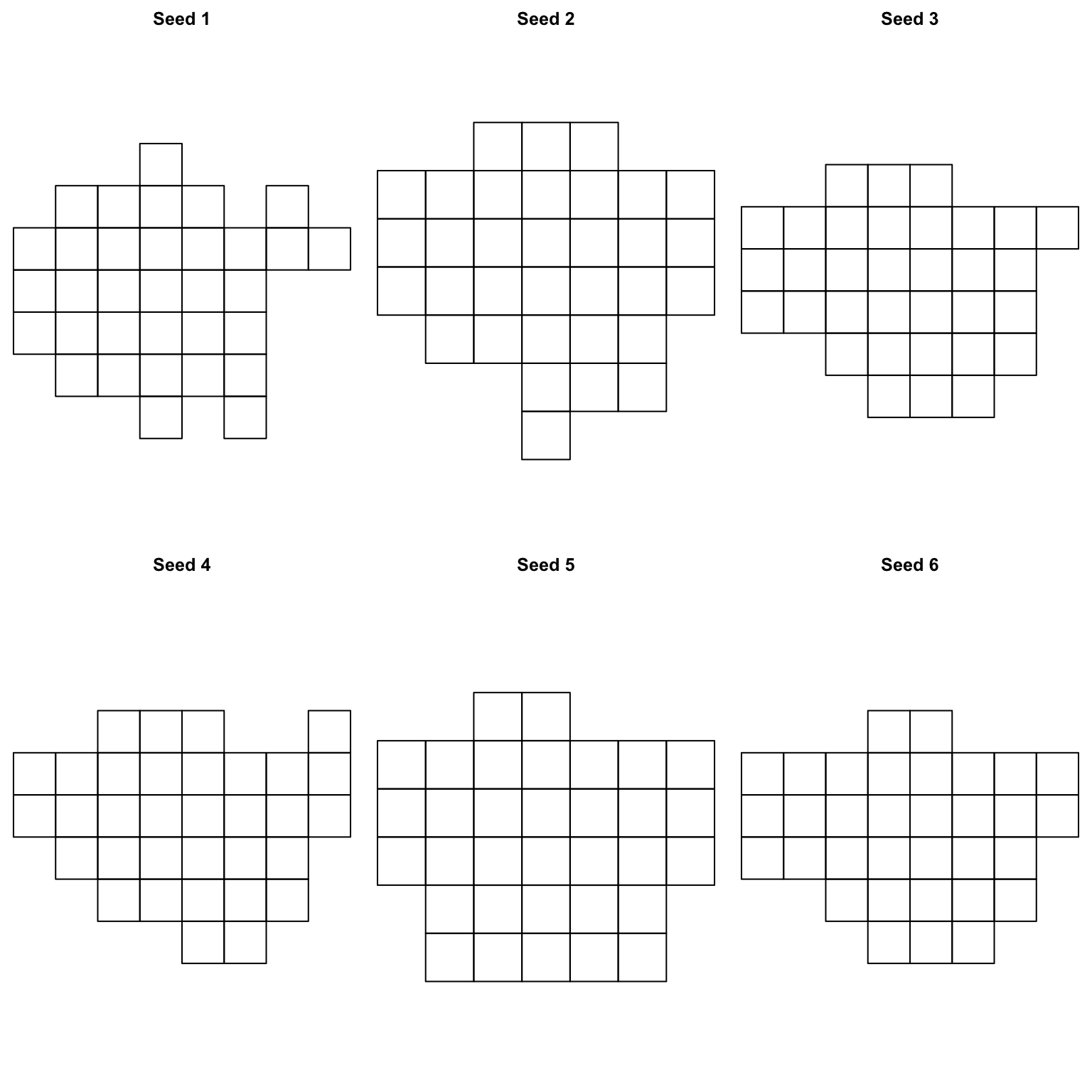 plot(new_cells, main = paste("Seed", i, sep = " "))