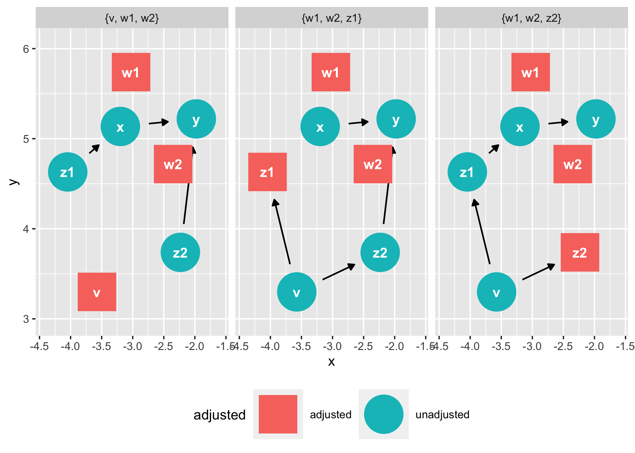 x <- w2 -> y