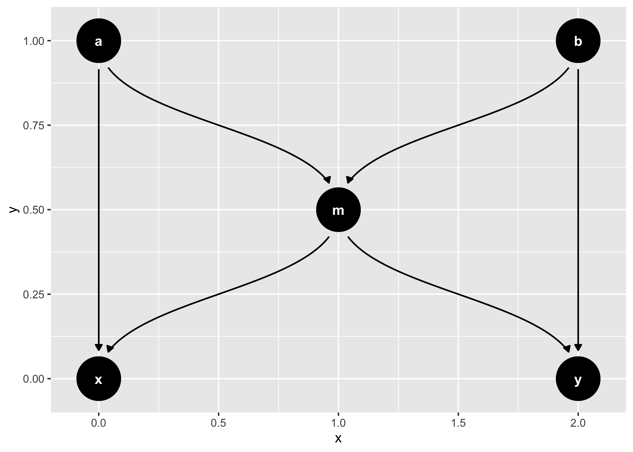 dagify(m ~ x + y) %>%