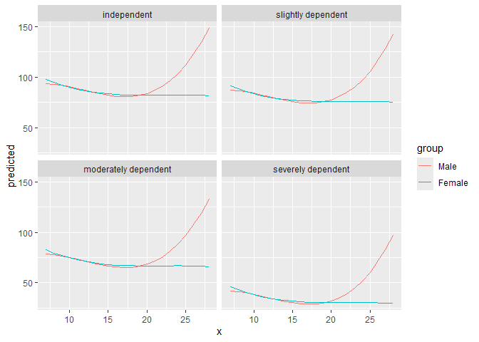 #> 7 | | moderately dependent | 78.29 (72.08, 84.49)