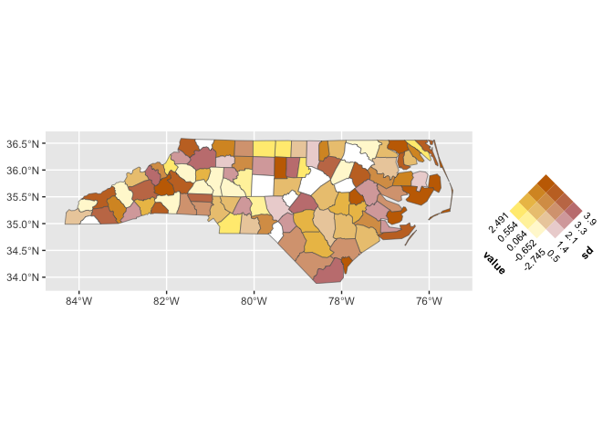ggplot(nc) + geom_sf(aes(fill = duo(value, sd)))