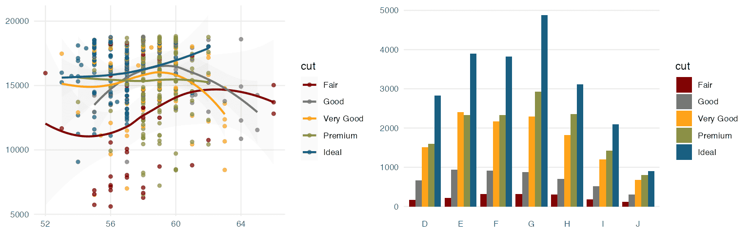 ggsci offers a collection of ggplot2 color palettes inspired by scientific journals, data visualization libraries, science fiction movies, and TV shows.