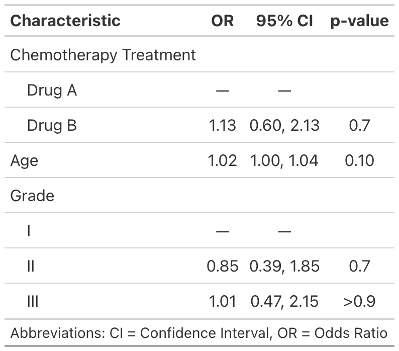 t1 <- tbl_regression(mod1, exponentiate = TRUE)