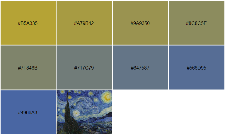The examples below offer some typical considerations to make when deriving a color palette from an arbitrary image.