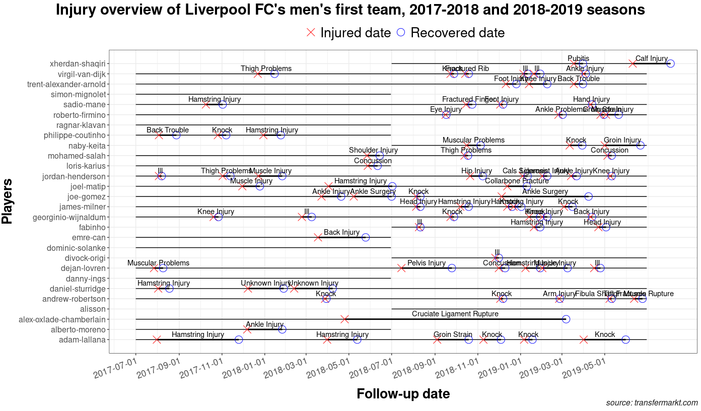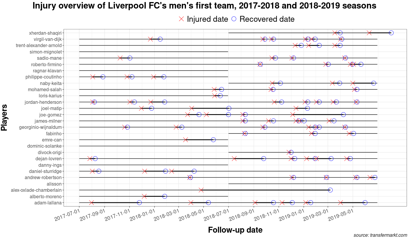 title = "Injury overview of Liverpool FC's men's first team, 2017-2018 and 2018-2019 seasons",