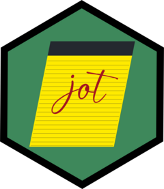 install.packages('jot')The normal workflow with jot is two staged, first is creating notes and second is reading them.