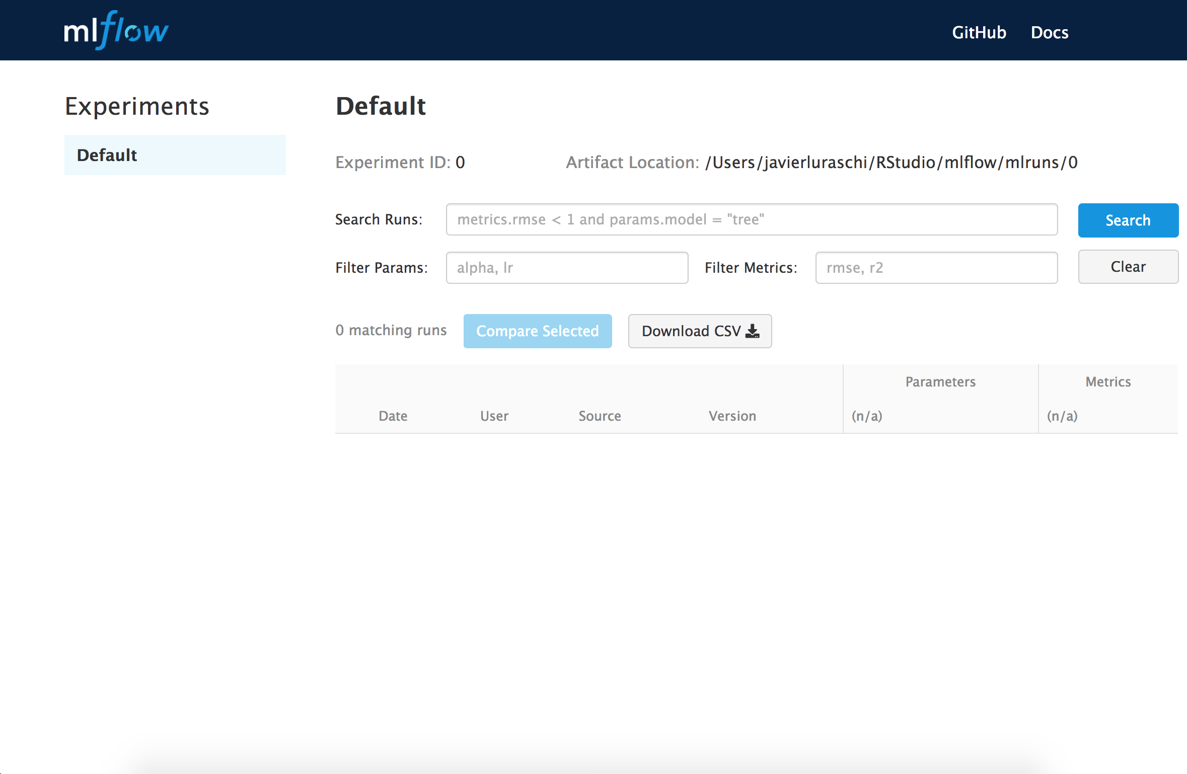 MLflow allows you to group runs under experiments, which can be useful for comparing runs intended to tackle a particular task. You can create and activate a new experiment locally using mlflow as follows: