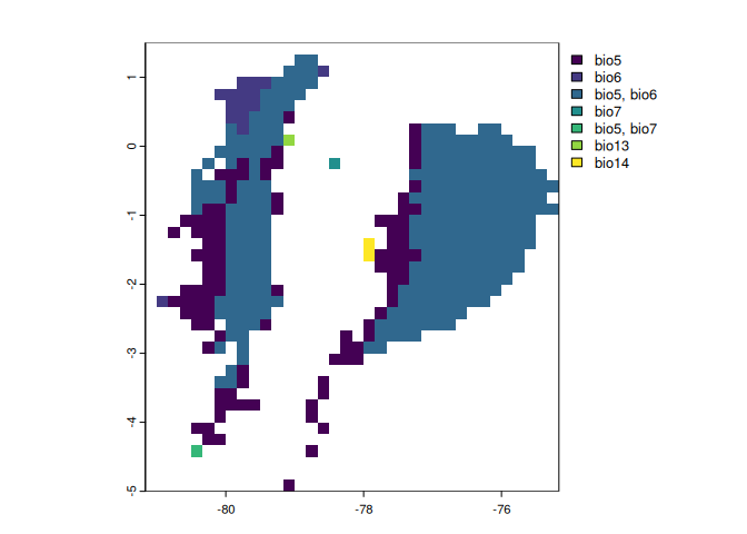 #> max value : bio14Below are some example plots of the results that can be obtained from