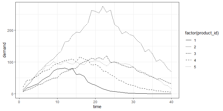 The goal of npdsim is to simulate the demand for ready to launch new products over their life cycle, and to simulate their attributes. The generated data will help you test and compare your new product demand forecasting approaches.