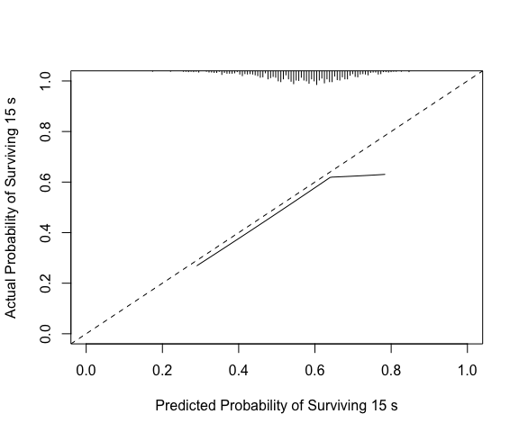xlab="Predicted Probability of Surviving 15",