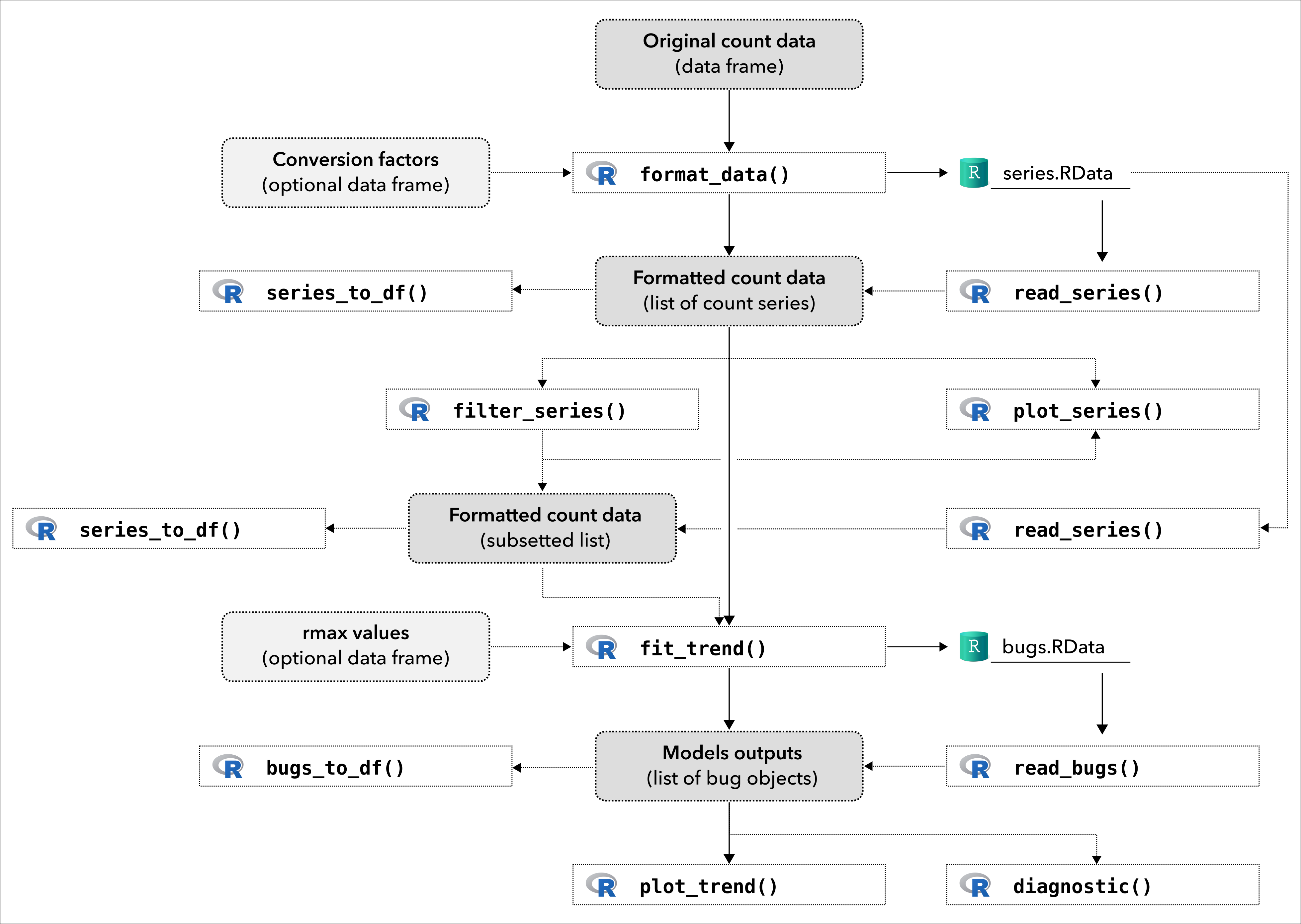 Casajus N. & Pradel R. (2023) popbayes: Bayesian model to estimate population trends from counts series. R package version 1.2.0. URL: https://frbcesab.github.io/popbayes/.