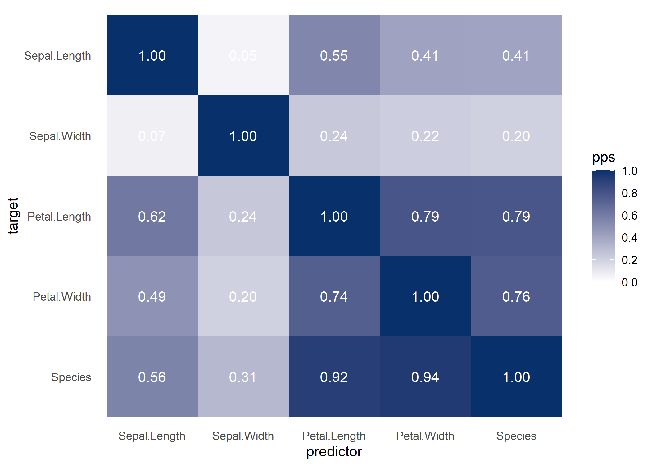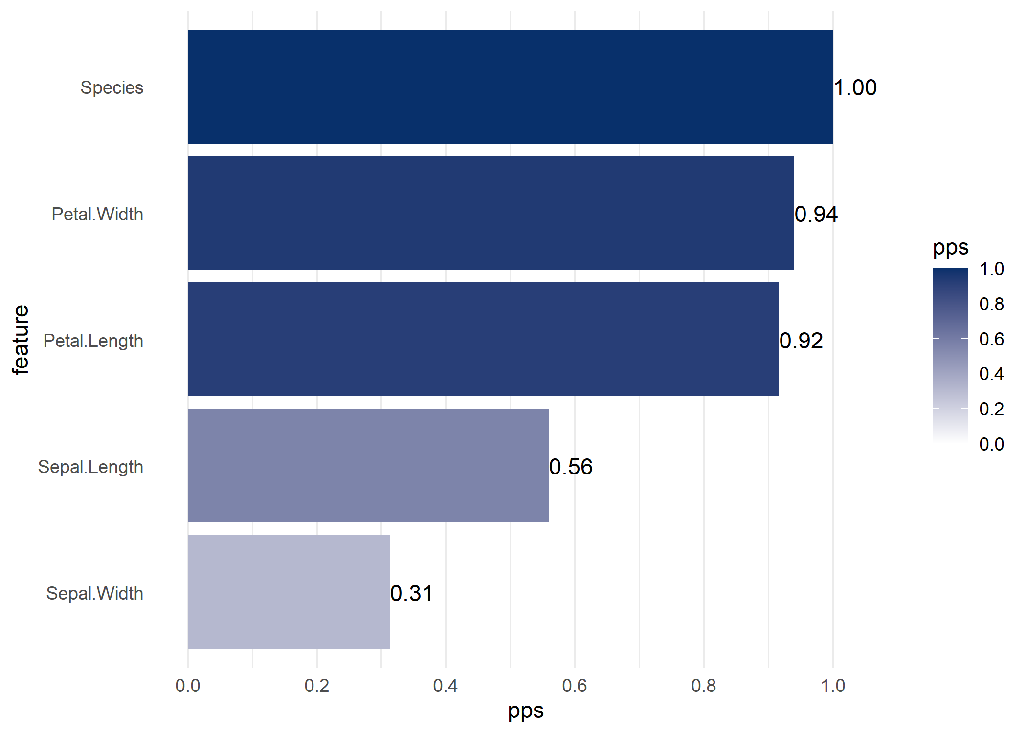 ppsr::visualize_pps(df = iris, y = 'Species')