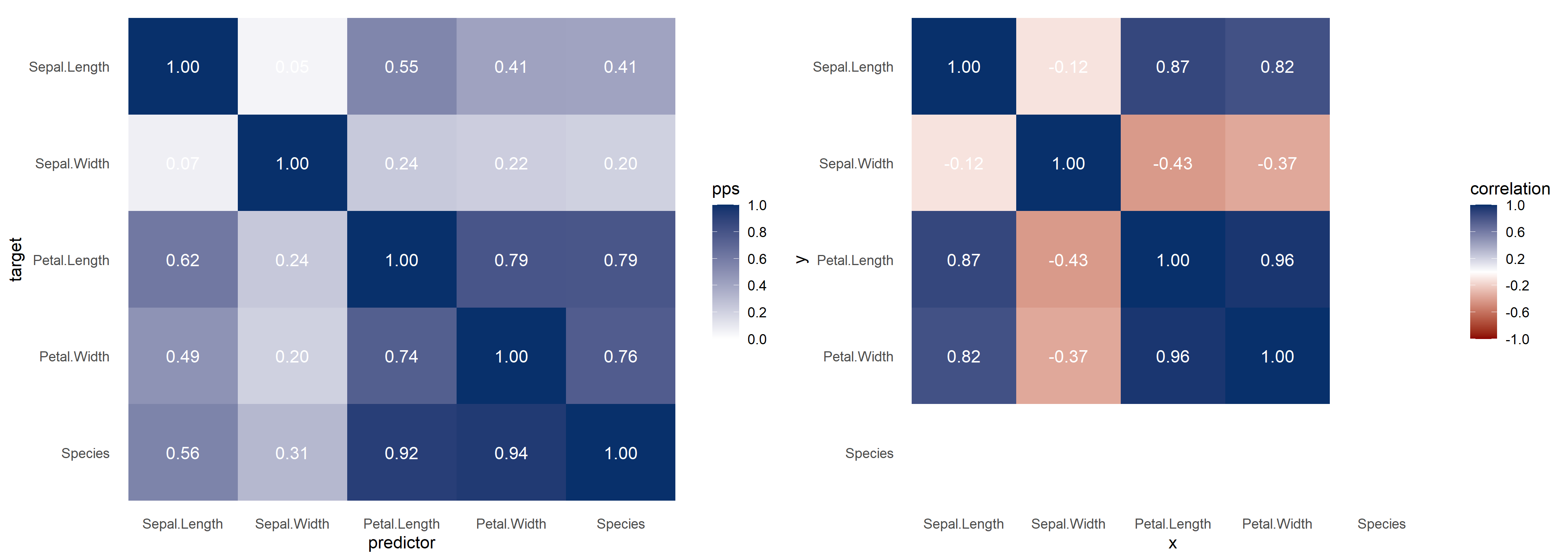 #> 18 Petal.Length Petal.Width predictive power score 0.74378445
