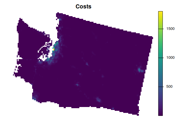 plot(wa_pu, main = "Costs", axes = FALSE)