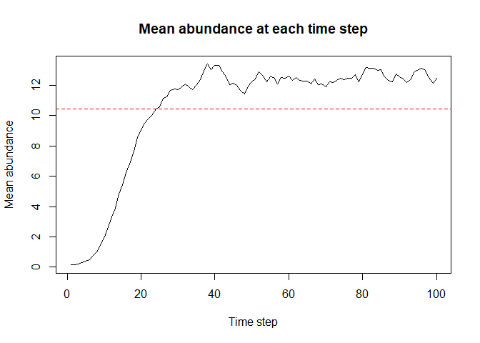 Here, we set the intrinsic population growth rate to log(2) and the rate parameter that is related to the kernel function describing dispersal to 1/1e3.