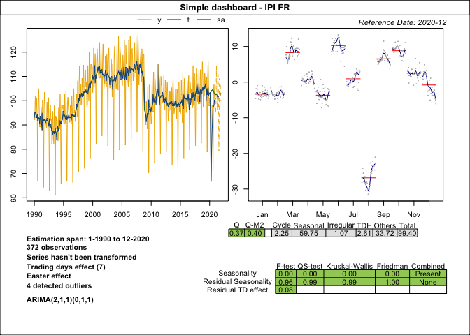 rjdqa is an extension of the R package RJDemetra, which is an interface to JDemetra+, the seasonal adjustment software officially recommended to the members of the ESS and the European System of Central Banks.