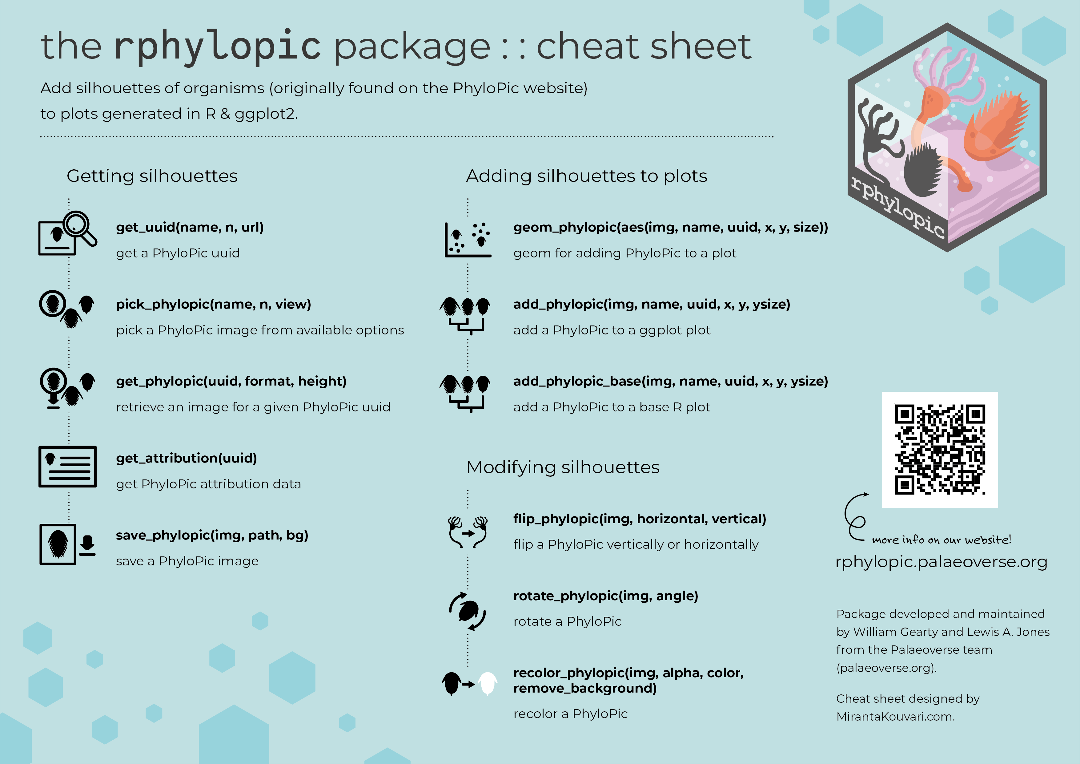 Gearty, W. and Jones, L.A. 2023. rphylopic: An R package for fetching, transforming, and visualising PhyloPic silhouettes. Methods in Ecology and Evolution, 14(11), 2700-2708. doi: 10.1111/2041-210X.14221.