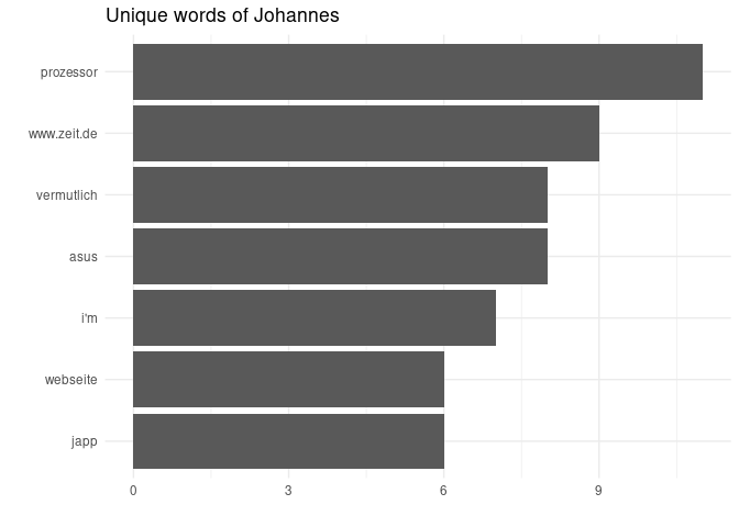 ggtitle("Unique words of Johannes")