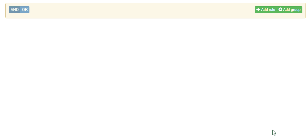 })queryBuilderInput state with queryRule(s)As shown above, the returned widgets value is interpreted by queryBuilder package. The package itself allows to construct filtering query with the usage of rules and groups - definitions for single field filtering operation and the way for combining them into a single filtering query.