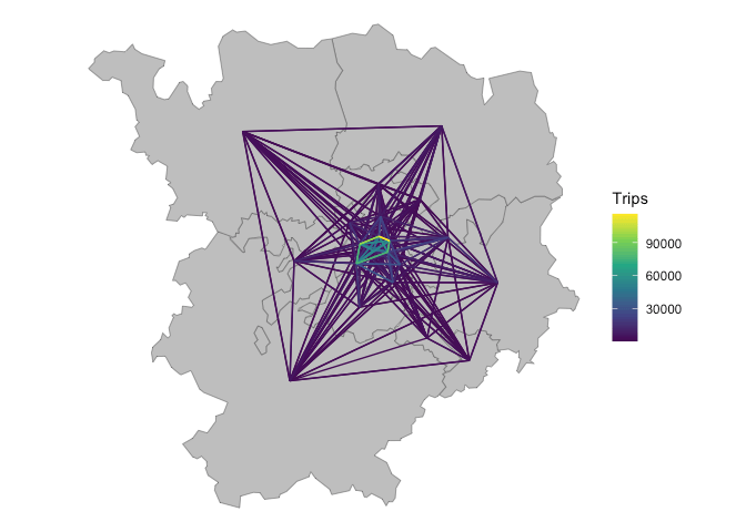 filter(id_origin != id_destination)We can convert these to geographic data with the {od} package (Lovelace and Morgan 2024):