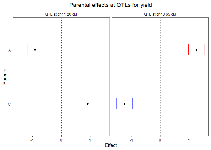 The confidence intervals around the parental effects for each QTL: