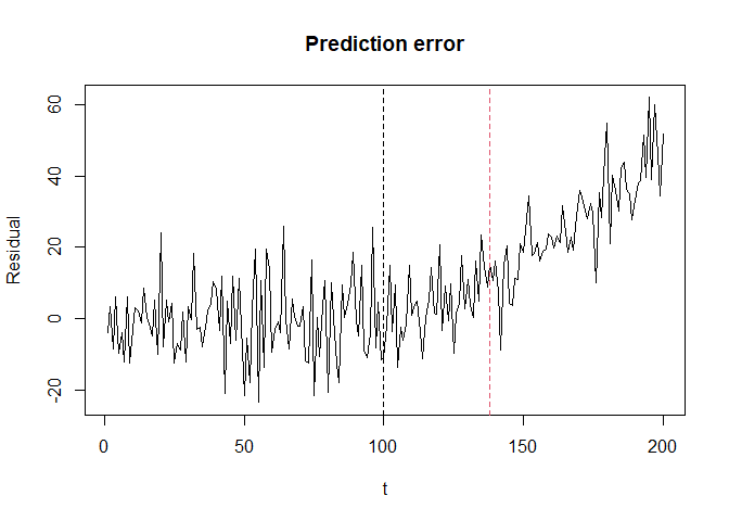 xlab = "t", ylab = "Residual", main = "Prediction error")