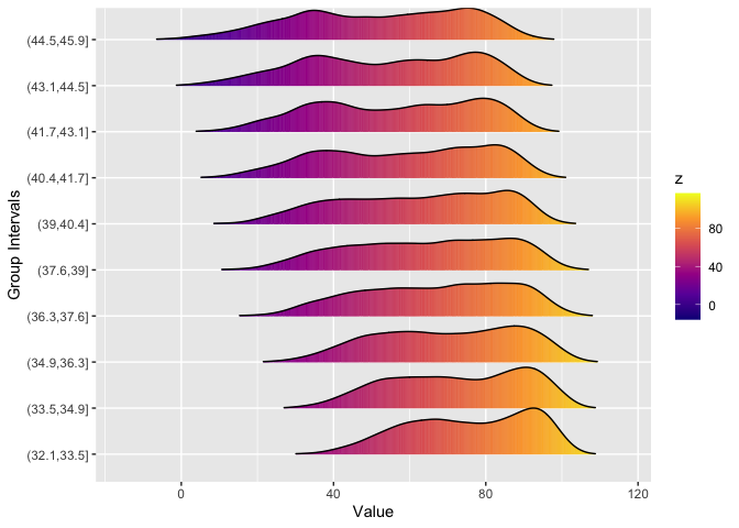 ridgeline(tmin, group_col = 'lat', z_col = 'z')