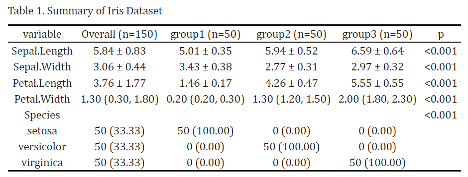 kbl(caption = "Table 1. Summary of Iris Dataset",